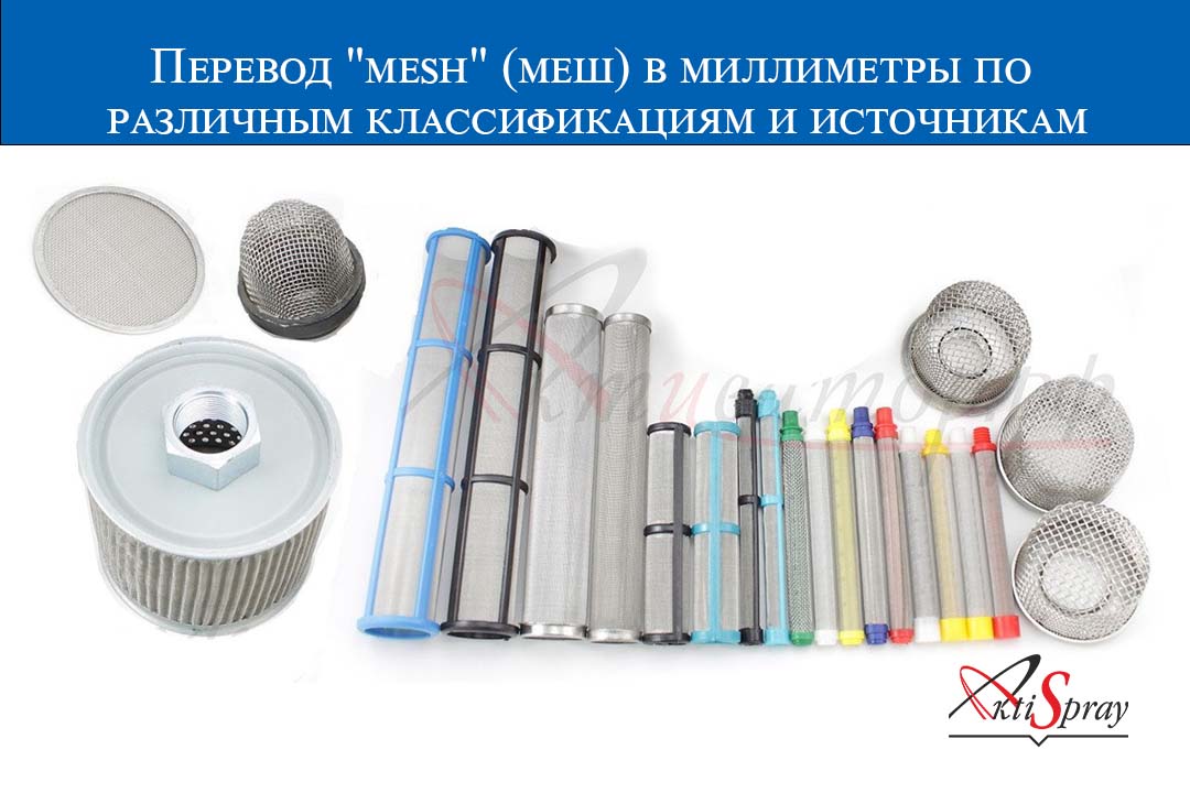 Измерение сеток в «mesh» (меш) пришло из текстильной промышленности и обозначает количество ниток на линейный дюйм полотна. При этом толщина нитки влияет на размер отверстий, но никогда не указывается, что не позволяет рассчитывать размер отверстий сеток в свету и размер частиц, проходящих сквозь сетку. Это привело к тому, что разные классификации не согласуются между собой, а размеры частиц, проходящих через сетку с одним и тем же размером в «mesh», отличаются (табл.).